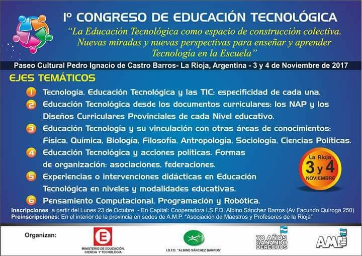 Los interesados en recabar más información pueden escribir al correo electrónico: congresoteclarioja@gmail.com. También puedan visitar el sitio http://congreso.albinosanchezbarros.edu.ar/