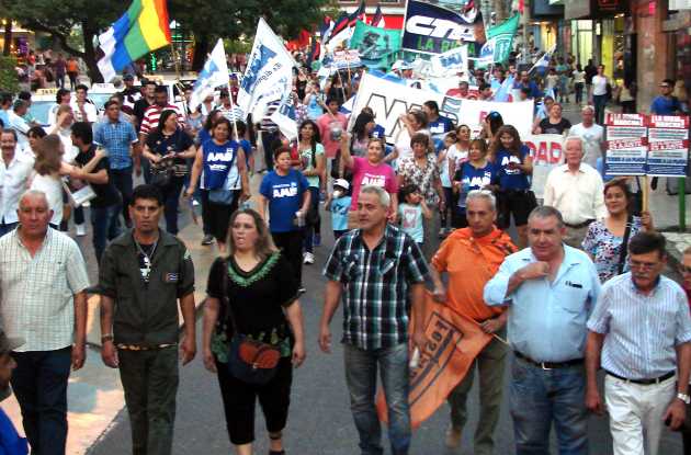 La Rioja Marcha; No es Reforma, es Ajuste El 29 de noviembre, se concretó una importante movilización, en plaza 25 de mayo, coincidente con la convocatoria nacional, por el rechazo por el paquete de reformas neoliberales y a las políticas de desprotección a los trabajadores estatales y del parque industrial. El intenso calor de la jornada de ayer, no impidió que una amplia convocatoria de sindicatos riojanos movilizaran para expresar, mediante un documento único, su rechazo a la reforma laboral, previsional e impositiva que impulsa el Gobierno nacional. El documento también condenó la actitud asesina y manipuladora con la que el gobierno de Cambiemos maneja los conflictos sociales. Estuvieron presentes: CTA AUTÓNOMA, CTA DE LOS TRABAJADORES, CGT CORRIENTE FEDERAL DE LOS TRABAJADORES. SIPREN, SADOP. APROSLAR, AMP, SIDIUNLAR, ATE CHILECITO, ATE CONSEJO DIRECTIVO PROVINCIAL LA RIOJA, FERCOA, LA MARTÍN FIERRO, ENTRE OTROS. La Multisectorial tiene programado reiterar su posición en la conmemoración del aniversario del Riojanazo, el próximo 9 de diciembre. “Estamos comunicando con la antelación suficiente la realización de una jornada en recordación de ese movimiento”, dijo el secretario General de la AMP, Rogelio De Leonardi. El documento, consensuado por el Plenario de Organizaciones reunidos el viernes pasado y leído al cierre de la movilización, culmina con las siguientes consignas: *Llamamos a todas las organizaciones populares al rechazo y resistencia de las reformas: Laboral, previsional y tributaria que mantienen un carácter antipopular, al servicio de los interés empresariales y por mandatos del FMI que así lo exige. *Solicitar a los Diputados Nacionales y Senadores que no avalen estos proyectos en las cámaras legislativas. *Condenar el crimen de Rafael Nahuel, joven mapuche de 22 años que se hallaba defendiendo los derechos de ese pueblo originario. *Rechazar los intentos de explotación minera simulados, en Parque Nacional, en el Famatina. *Efectuar un llamamiento a las organizaciones populares a una recordación del Riojanazo, este 9 de diciembre, para continuar manifestando contra esta afrenta que significan estas reformas | ||||