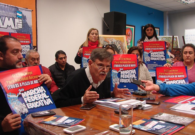 AMP convocó a la docencia riojana a adherir mañana al Paro Nacional de CTERA AMP ratificó el llamado al Paro Nacional Docente, para mañana miércoles, sin asistencia a los lugares de trabajo, en el marco Marcha Federal Educativa. El reclamo es por la restitución de la Paritaria Nacional, por una nueva Ley de Financiamiento Educativo y por la resolución de los conflictos en las provincias. Desde La Rioja viajaran hoy delegados docentes de toda la provincia para coincidir mañana, junto a docentes de todo el país, del acto de llegada de la Marcha a Plaza de Mayo en CABA. En conferencia de prensa, el titular de AMP y Sec. de Derechos Humanos de CTERA, Rogelio de Leonardi, ratificó junto a la dirección del sindicato, la convocatoria al paro, sin asistencia a los lugares de trabajo y en ejercicio pleno de del Derecho Constitucional de huelga, advirtiéndole al gobierno Provincial, sobre la grave contradicción en la que incurrirá si decide descontar el paro. En ese sentido, el sindicalista señaló que las consignas del reclamo docente, en entre ellas la sanción de nueva Ley de financiamiento educativo, que restituya justamente el fondo compensador que le fue quitado a la provincia, deberían primar por encima de un descuento ilegal. | ||||