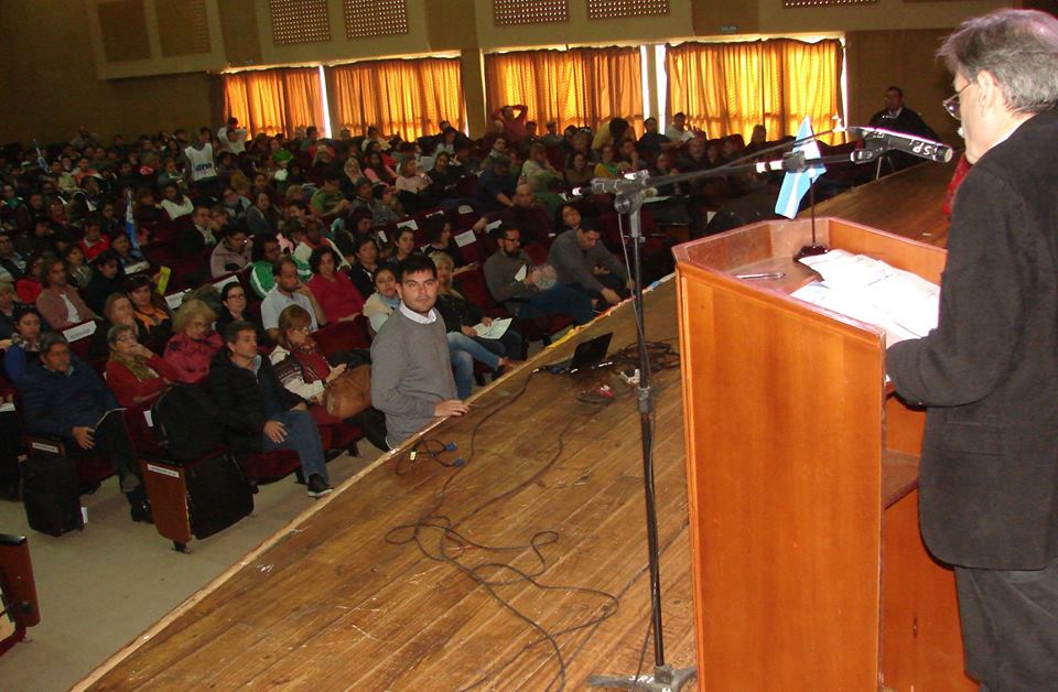 La sala Académica “Dr. Oscar Quiroga Galíndez” de la UNLaR, se vio desbordada con los asistentes al evento bianual realizado por AMP en Defensa de la escuela pública, en esta oportunidad, en un contexto de resistencia creativa a la avanzada de políticas Neoliberal en América Latina. Los asistentes, provenientes de distintas provincias argentinas, le dieron un carácter Federal al congreso que tuvo a expositores de excelente trayectoria académica, política y sindical. La apertura, el día viernes, empezó con la interpretación de los himnos, nacional y provincial, por la cantora popular Gloria de la Vega; luego hizo su participación el Grupo de Jubilados del Taller Danzas Folclóricas de AMP que interpretaron ritmos autóctonos y latinoamericanos. La bienvenida a los invitados, lo realizó su anfitrión, el rector de la Universidad Nacional de La Rioja, Fabián Calderón, destacando que la universidad pública debe ser parte de la defensa del sistema educativo. “Vamos a dar las luchas y los espacios necesarios colectivamente para demostrar que la UNLaR en La Rioja, con AMP y el ministro de educación es posible tener una universidad pública, una educación pública emancipadora, una escuela pública que está dispuesta a luchar y formar derechos y mejores condiciones para nuestro pueblo. Luego, habló el ministro de Educación de La Rioja, Juan Luna, que manifestó “celebramos la realización de estos encuentros que nos permiten debatir y reflexionar sobre las políticas educativas, aunando fuerzas para continuar luchando y defendiendo el derecho a la educación pública y gratuita”. Rogelio De Leonardi, secretario Gral. de AMP y de DDHH de CTERA, señaló la similitud del contexto del país del primer Congreso de AMP, en el año 2.002, con el actual “el desmantelamiento del Estado en materia de derecho a la educación, la destrucción de conquistas en Derechos Humanos y el sometimiento al saqueo impuesto por el FMI a la llamada revolución de la alegría impuesta por Cambiemos”. Seguidamente se realizó el Panel Central, “Derechos Humanos y Soberanía de los pueblos” con los embajadores invitados al evento, Husni Abdel Wahed de Palestina, y Orestes Pérez Pérez de Cuba.Luego se desarrollaron Mesas de Trabajo en simultáneas en seis aulas del modulo del Departamento de Ciencias Humanas y de la Educación En la oportunidad, estuvieron presentes en el Congreso Popular e Internacional en Defensa de la Escuela Pública, académicos, pedagogos y sindicalistas de países latinoamericanos: entre ellos, Pablo Imen (IDELCOP-CCC de Argentina); Diana María López Cardona, (Colombia); Luis Bonilla (CIM de Venezuela), Alfonso Tamayo(FECODE de Colombia) y Yesid González (ADE de Colombia); Nahuel Berguier (Campaña contra la violencia Institucional); Daniel Silver (ICUF); Fabio Inalef (Org, Mapuche Kallfu Mapu); Miguel Duhalde (Sec. de Edu. De CTERA); Eduardo Pereyra ( Sec. de Relac. Internac. De CTERA); Julia Albarracín (Agrupación Hijos); Florencia Guimaraes (Artista y activista travesti); Mario Alderete (CONAT); entre otros.