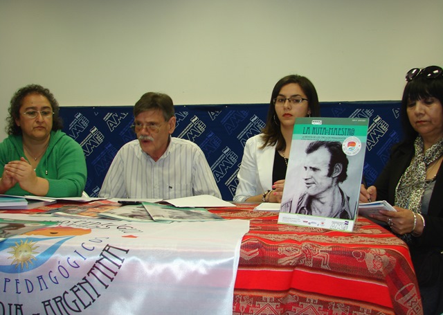 Memorias y Revistas Ediciones AMP Se presentó en el Salón de Usos Múltiples de AMP, las Memorias del VII Congreso Popular en Defensa de la Escuela Pública realizado en el 2.016, la revista Nº 3 de los Círculos Pedagógicos “La Ruta del Maestro” y se anunció la creación del Instituto de Formación e Investigación Permanente - IFIP de la AMP. Este último, se presentará en próximos días, con la participación de pedagogos/as y profesionales de la educación, de Institutos de Formación Docente y Universidades de la República Argentina. Entre las actividades que realiza la secretaria de Educación de Asociación de Maestros y Profesores de La Rioja (AMP), se presentó para los trabajadores de la educación, con Ediciones AMP, el Libro que sintetiza las Memorias del VII Congreso Popular en Defensa de la Escuela Pública realizado en el escuela de Comercio Nº 1 de nuestra ciudad en el 2.016, “Año del Bicentenario de la Independencia y de la Resistencia Creativa ante la Avanzada Neoliberal en América Latina”. También se mostró, la tercera revista de los Círculos Pedagógicos de AMP “La Ruta del/de la Maestr@” que muestra el trabajo de los docentes riojanos, sistematizando experiencias y como aporte para la construcción del Movimiento Pedagógico Latinoamericano y al sindicalismo de liberación. La secretaria de Educación de AMP, Ingrid Mercado, dijo a los medios presentes “Las memorias conservan el reservorio pedagógico que tiene el sindicato con respecto al trabajo que lleva adelante el Movimiento Pedagógico latinoamericano, que refleja el rescate de experiencias pedagógicas, emancipadoras y que las ponemos en valor a través de las publicaciones que acá se presentan”. Lucina Toledo, delegada del ISFD de Patquía y colaboradora de la Secretaria de Educación, anunció la creación del Instituto de Formación e Investigación de AMP. “Es un hecho muy importante, un salto cualitativo para la formación permanente, contínua, gratuita y en ejercicio con el objetivo de articular las líneas de trabajo político-sindical-cultural-pedagógica que se está realizando y poder ampliar la mirada en los procesos de formación” También participó de la conferencia de prensa, el secretario gral de AMP, Rogelio De Leonardi, que expresó: “Los docentes riojanos, tenemos preocupaciones: políticas, sindicales, culturales y pedagógicas; si bien, éstas se vienen manejando en los ochos congresos internacionales, bianuales, en defensa de la escuela pública, significa que estamos transitando un buen camino (…) El próximo año, se cumplen 250 años del natalicio de Simón Rodríguez, quien fuera maestro de Simón Bolívar, en búsqueda del rescate de las pedagogías latinoamericanas originarias, la AMP hará realizaciones diversas de formación docente gratuita para afiliados del sindicato” concluyó.