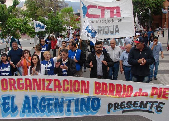 Marcha en La Rioja por más salario y contra el ajuste de Macri-FMI Trabajadores riojanos marcharon en el centro de la ciudad, dando por inicio el Paro nacional de 36 horas resuelto por la CTA de los Trabajadores, a lo que se sumaron dirigentes sindicales de la CGT, que inician el paro de actividades, hoy martes 25 de septiembre. En sus discursos los oradores se expresaron por la necesidad de aumentos salariales, en contra de los despidos en el Parque industrial, y de la política económica de Mauricio Macri. El inicio de semana, encontró un país con la clase trabajadora enfrentando la política del gobierno de Cambiemos. Las centrales nacionales de trabajadores, en conjunto a las organizaciones sociales, conformadas por trabajadores precarizados, resolvieron un Paro de actividades para repudiar las medidas de ajuste y hambre del gobierno de Mauricio Macri. En la provincia de La Rioja, la concentración se realizó en Plaza 25 de Mayo, y se marchó, en el mediodía del lunes, con la pancarta “Fuera el FMI”. Franklin reinoso, titular de SIDIUNLaR, inició los discurso diciendo “Traemos la adhesión y acompañamiento a todos los trabajadores de los docentes de la UNLAR (…) Estamos luchando por la lucha y la dignidad de los compañeros y de la familia riojana, por la estabilidad que necesitamos los trabajadores con salarios dignos; por eso, decimos no al Ajuste y no al acuerdo con el FMI” Esteban Sarroca, en representación de FAGDU, gremio docente de la UTN, dijo “Lo que le pasa a la UTN, es lo mismo que pasa a todas las entidades educativas, con problemas; estamos peleando por la educación pública y gratuita…Le están quitando recursos, no debemos permitírselos, debemos luchar por el incremento del Presupuesto 2.018 y que el del 2.019, no tenga números tramposos… Hoy somos una parte de lo que están protestando contra el gobierno nacional”. El dirigente de Barrio de Pie y la CTA de los Trabajadores, Martin Illanes, también estuvo entre los oradores “Estoy en representación de los compañeros, que están en la línea de contención de lo que menos tienen, y que somos parte de la CTA en La Rioja (…) hoy un cerco mediático, oculta a la sociedad lo que está pasando en el país y en La Rioja: el ajuste, los despidos, comercios que han cerrado; por eso hay que pararle la mano a Macri…buscan que los pobres, tengan hijos pobres, nietos pobres y que no salgan adelante. Pobreza cero es toda una mentira, hay que poner en agenda la distribución de la riqueza “ Claudia Allegri, del SADOP, acompañó la movilización y dejó su mensaje “La unidad de los trabajadores va esta solamente en la calle. Estamos pasando momentos muy complicados, la unidad va hacer el cambio, para en el 2.019 tengamos un gobierno nacional y popular que contenga a todos los trabajadores de la economía formal, no formal y a todos los precarizados” Rogelio De Leonardi cerró la lista de oradores diciendo“Sin unidad no vamos a derrotar al imperialismo norteamericano y al brazo ejecutor que tiene en Argentina, Macri y Cambiemos. El objetivo principal es parar el ajuste y luchar en contra del FMI (…) luchamos por la unidad de los trabajadores sobre la base de conceptos firmes y claros…Tiene que ser un paro contundente, hay que arriar las banderas de la clase trabajadora que se organiza para defender sus intereses, no la de los partidos políticos. Por eso vamos a seguir en la calle y vamos a conversar con todos los de buena voluntad y de buena fe, quieran construir esta unidad indestructible de los trabajadores y del pueblo”. En lo que refiere al sector, el gremialista dijo “Que se vaya Macri, Juicio político a Macri. Que nos devuelva la Paritaria Nacional a los trabajadores de la educación; que nos den la Ley de Financiamiento educativo que le hace falta a esta y a otras provincias argentinas que no van a poder subsidiar la educación de nuestros hijos y nietos. Este es el bautismo de fuego de la CTA electa recientemente, no solo con los sindicatos que la integran, también con los movimientos sociales. Los que no se hayan sumado hoy, lo harán seguramente en los días sucesivos, porque esta situación, sino la combatimos, vino para quedarse” concluyó | ||||