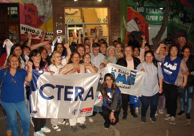 Otro triunfo para De Leonardi en AMP El escrutinio provisorio, de las elecciones llevadas a cabo hoy por la Asociación de Mae4strois y Profesores de La Rioja, escrutadas el 98% de las mesas de toda la provincia, indica que la lista Azul N° 1, “Unidad Docente” que lidera Rogelio De Leonardi se impuso al candidato de la lista Blanca N° 2, el docente Ariel Ramírez, por un margen estrecho del 54% contra un 46%. Así lo hizo saber el candidato triunfante en una declaraciones de prensa, ante la algarabía de los simpatizantes, dando lecturas de los resultados de todos los departamentos de la provincia, según los datos aportados por los fiscales de lista. “Los resultados y la cantidad de votantes superó todas las expectativas, frente a la lista opositora que contó con el apoyo de Cambiemos en la mayor parte de los departamentos de la provincia, donde sus candidatos son de origen radical-PRO. Deja claro que hemos triunfado sobre un aparato que ha llegado a pagar en lugares, hasta 700 pesos a los fiscales y repartir bolsones (…) Estamos viviendo una jornada extraordinaria, un ejemplo más del trabajo serio, el tesón, la voluntad y la responsabilidad que nos caracteriza. Es el prestigio de AMP a nivel nacional, tenemos una multiplicidad de saludos de compañeros de Colombia, Chile, Venezuela y de todas las provincias argentinas y de todos los compañeros que saben cómo es el trabajo de los compañeros de de AMP(…) Estos datos muestran una tendencia irreversible, También ha fracasado un campaña insidiosa, de otro sector que no tiene ningún predicamento dentro del sindicato, que habían planteado el voto en blanco; nada más absurdo, son los mismos que permitieron que Cambiemos ganen en el 2.01; son oportunistas y siempre van hacer lo mismo. Acá han ganado los trabajadores de la educación, frente a la lista opositora y con el Ministerio de Trabajo metido todo el día en el sindicato fiscalizando la elección” concluyó el reelecto secretario general de la AMP. | ||||
