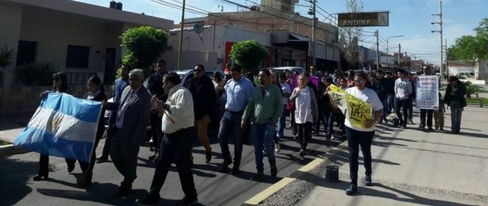 Rogelio De Leonardi: “La Escuela Pública tiene quien la defienda, es la comunidad” El secretario Gral de AMP, Rogelio De Leonardi acompañó la Asamblea y movilización que se realizó en la ciudad de Aimogasta en repudio a la agresión y daño que sufrió el Colegio Secundario “Cornelio Sánchez Oviedo” en la madrugada del lunes; se reclamó seguridad, trabajo digno y escuelas en buenas condiciones de trabajo. Una marcha callejera, acompañada de padres, docentes, alumnos y público en general, expresaron su malestar e indignación por el daño físico sufrido por en una escuela pública en Aimogasta. Los manifestantes concluyeron la movilización, con un abrazo simbólico a la institución. “La escuela pública tiene quien la defienda, es la comunidad” expresó Rogelio De Leonardi a los medios de comunicación que le consultaron sobre su participación. “En cuanto la escuela pública tenga este tipo de repuesta, contrariando la voluntad del propio supervisor de Zona, el Sr. Pastor Nieto, que no habría autorizado este tipo de realizaciones con un criterio burocrático, no prestarle oído a este reclamo, nos pone muy en alerta (…) la AMP desde siempre estuvo de la lado de la solución de la problemática que se produce en la escuela pública riojana” dijo el sindicalista
