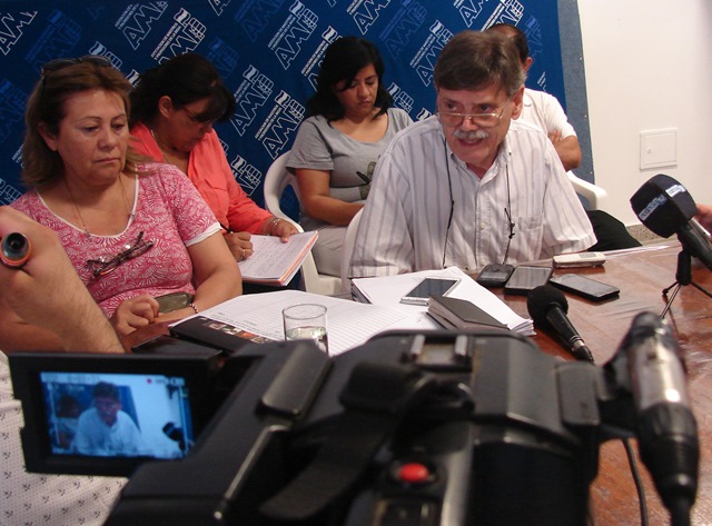 De Leonardi: “Es una situación límite la que atraviesan todos los docentes, enfermeros, médicos y empleados públicos de la APP” La AMP realizó una conferencia de prensa donde se informó sobre la carencia de contactos con las autoridades del l Ministerio de Educación, por una equiparación salarial equivalente a la pérdida del poder adquisitivo de los trabajadores de la educación. La Asamblea Provincial de Delegados de AMP prevista para el día de mañana, resolverá un Plan de Lucha. Continúa la recolección de firmas en contra del Decreto Cavero. El secretario General de AMP y de la CTA de los trabajadores señaló “la inflación está superando el 40%, al 30 de octubre y los incrementos docentes recibidos este año, no superan el 15% y 17%, esta profunda brecha, necesita un recomposición salarial del 25 % (…) No nos han llamado a discutir el incremento para los docentes para el segundo semestre de este año; no entendemos por qué se sigue postergando de semana a semana un anuncio que a todas luces no va satisfacer las demanda de todos los trabajadores de la provincia de La Rioja. Es una situación límite la que atraviesan todos los docentes, enfermeros, médicos y empleados públicos de la APP ”, expresó De Leonardi. También se informó, que continuará mañana, en el Centro Administrativo Provincial, la recolección de firmas de pedido de derogación del Decreto Cavero; con la intención de presentar el Proyecto de Ley antes de la última sesión de la Cámara de Diputados de La Rioja. Esta acción, se realizará con la participación de las organizaciones de la CTA de los Trabajadores.