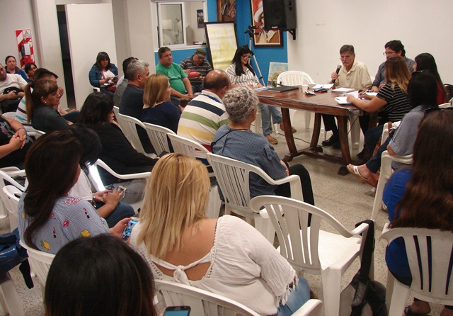 Segundo Cuarto Intermedio de la 209º Asamblea de la AMP Se concretó ésta tarde del jueves, el Segundo Cuarto Intermedio de la 209º Asamblea de AMP. Entre sus resoluciones se decidió un abandono de tarea de media jornada para acompañar a la Comisión Salarial en la discusión con el Ministro de Educación y con los otros gremios. Rechazó la imposición del gobierno del 16% al básico, y exige que se incorpore el 25%, para equiparar la inflación del 40%, al 31 de octubre. La Asamblea por unanimidad, resolvió el No inicio del Ciclo Lectivo 2.019, en estas condiciones. No hay diálogo con los sindicatos, hay imposiciones ministeriales. Los delegados escolares, participes de la Asamblea, manifestaron su desagrado por el cambio de fecha de la reunión de la mesa Salarial de los sindicatos con las autoridades, prevista para esta tarde. La misma, fue postergada por el Ministro de Educación, para mañana viernes 16 de noviembre, a las 11.30 horas. Luego de la presentación de mandatos y del debate de los mismos, se resolvió , el rechazo de la Propuesta ofrecida el día lunes por el ministro, Juan Luna Corzo; facultando a la Comisión Salarial para participar de la reunión de mañana e informar la Resolución de Asamblea. Respecto al Bono impuesto por el ejecutivo provincial, se aceptó “bajo protesta”, porque no es parte del salario y es insuficiente.