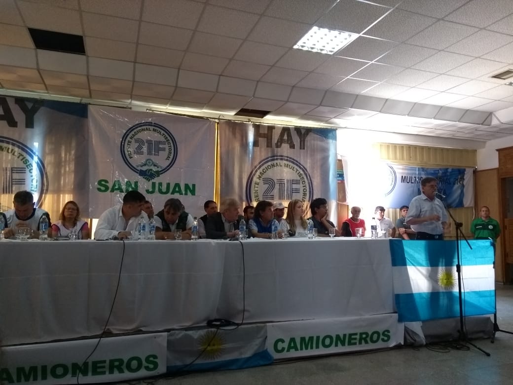 Primer Congreso de Cuyo de las Multisectoriales 21F (San Juan – 05/12/2018) Este Miércoles, se llevó a cabo en el Camping de Camioneros de la Ciudad de San Juan, el 1° Congreso Regional de Cuyo del Frente Nacional Multisectorial 21F, con el objetivo de regionalizar el análisis, profundizar los debates y reforzar los lazos sorteando diferencias y priorizando la Unidad. En esta oportunidad se contó con la presencia del dirigente Nacional Gustavo Vera, referente de la organización no gubernamental La Alameda, Pablo Moyano (Secretario Adjunto Nacional de Camioneros), Ricardo Cardozo (Camioneros Mendoza), Rogelio De Leonardi (Secretario General de la CTA de los Trabajadores, La Rioja) Pablo Faría (Secretario del Interior de la Asociación de Maestros y Profesores); Carlos Marcial (CTA de los Trabajadores); Federico Zalazar (Curtiembre de Nonogasta- CGT La Rioja); Jorge Reynoso (Camioneros- La Rioja, CGT "San Martín"); Andrea Blandini (Senadora de Unidad Ciudadana, Mendoza); Acosta (ATE Catamarca- CTA Autónoma); Martín Caín (Empleados de Casinos de Mendoza) y con la asistencia de referentes de CAMPO, FRENTE UNIVERSITARIO, Clubes Barriales, entre otros.