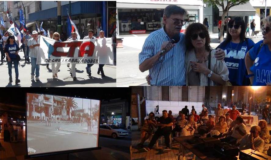 Se recordó el Riojanazo del 9/12/1.993 La CTA de los Trabajadores recordó los 25 años del Riojanazo. En la mañana del lunes, movilizó desde la “Plaza de la Resistencia”, como la bautizó la Rebelión de trabajadores un 10 de diciembre de 1.993 al ex Parque sarmiento, hasta la Plaza 25 de mayo. Participaron gremios de las dos CTA y de la Corriente Federal de la CGT. A pesar del “inédito receso estival” dispuesto por el gobierno provincial, se concretó la conmemoración de los 25 años del Riojanazo con la participación de dirigentes sindicales comprometidos con la clase trabajadora y el acompañamiento de movimiento sociales de nuestra capital. En la plaza principal, hicieron uso de la propaladora: Beatriz Martínez de AMP-CTA; Rolando Agüero de APROSLAR-CTA; Claudia Allegri de SADOP-CGT; Sergio Cabrera de Martin Fierro-CTA; Alfredo Arana de ATE-CTA autónoma y Rogelio De Leonardi quien lo hizo en compañía de otra participante del Riojanazo, la compañera Rosita Bazán. Rogelio De Leonardi, secretario Gral. de la AMP-CTA, recordó el acontecimiento, antes la consulta de los medios de prensa presente en el lugar. “No vamos a encontrar la magnitud de lo que hemos hecho aquel día. El Riojanazo no vino de un día para el otro, vino abonado por la toma de escuelas por parte de los estudiantes en La Rioja; estuvo precedido de históricas huelgas de AMP ese año y los anteriores; también de la Marcha de la Bronca, desde Chilecito hacia Capital, con Normando Ocampo acompañando la columna de ATE; fue un época histórica de los trabajadores provinciales que no ha sido superada todavía (…) éste es el sentido que tiene lo de hoy, juntarnos, rememorar la fecha, recordar hechos. “Los trabajadores ganamos la calle para exigir la derogación de la Ley Ómnibus; la plaza principal estaba tomada por 700 gendarmes provenientes de Córdoba, no se podía ingresar hacia allí a protestar…los que hemos vivido esa gesta, la debemos contar, historiar para que la conozcan los trabajadores jóvenes riojanos”, señaló De Leonardi. Por la tarde-noche, se proyectó en plaza 25 de Mayo un video con filmación casera del Riojanazo, realizado por el extinto Pedro Agost. En él se pudo observar la valentía del pueblo riojano por la defensa de sus puestos de trabajo y rostros de sus participantes.