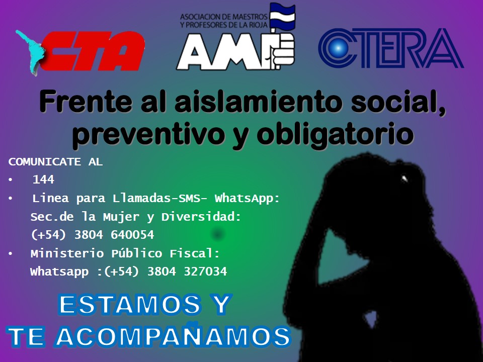 Frente al aislamiento social, preventivo y obligatorio establecido por el Gobierno Nacional, la AMP, desde su Secretaría de Género e Igualdad de Oportunidades, tomó nuevas medidas contra las violencias por motivos de género, con la premisa ESTAMOS Y TE ACOMPAÑAMOS. AYUDANOS A DIFUNDIR PARA LLEGAR A QUIENES NOS NECESITAN La Rioja, 21.03.20 *Comunicado Oficial de la AMP* | ||||
