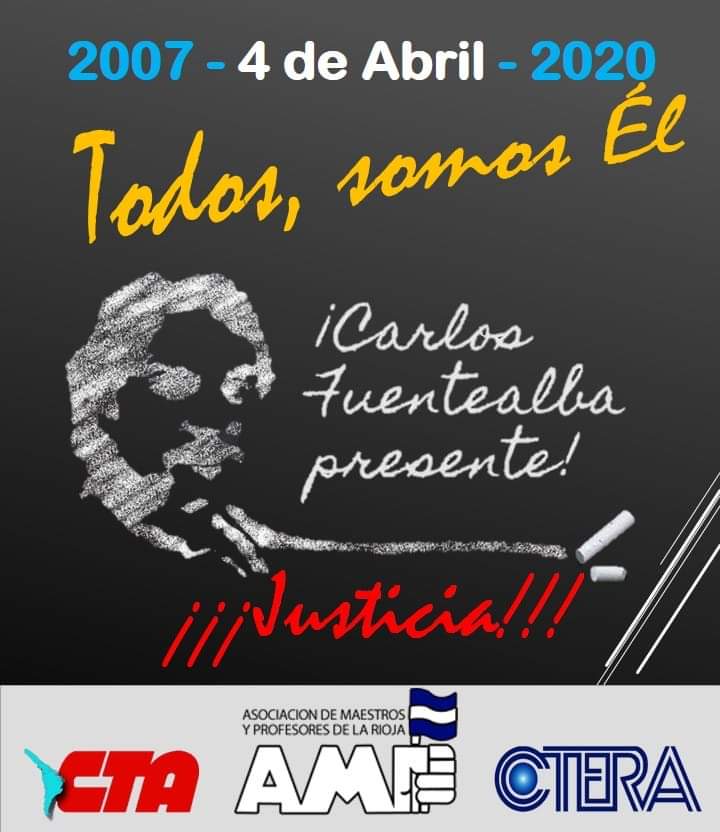 A 13 Años de su Asesinato, la AMP continúa exigiendo Justicia. ¡¡¡Carlos Fuentealba, PRESENTE, AHORA Y SIEMPRE!!! *Secretaría de DDHH de la AMP* La Rioja 03.04.20 *Comunicado Oficial de la AMP*