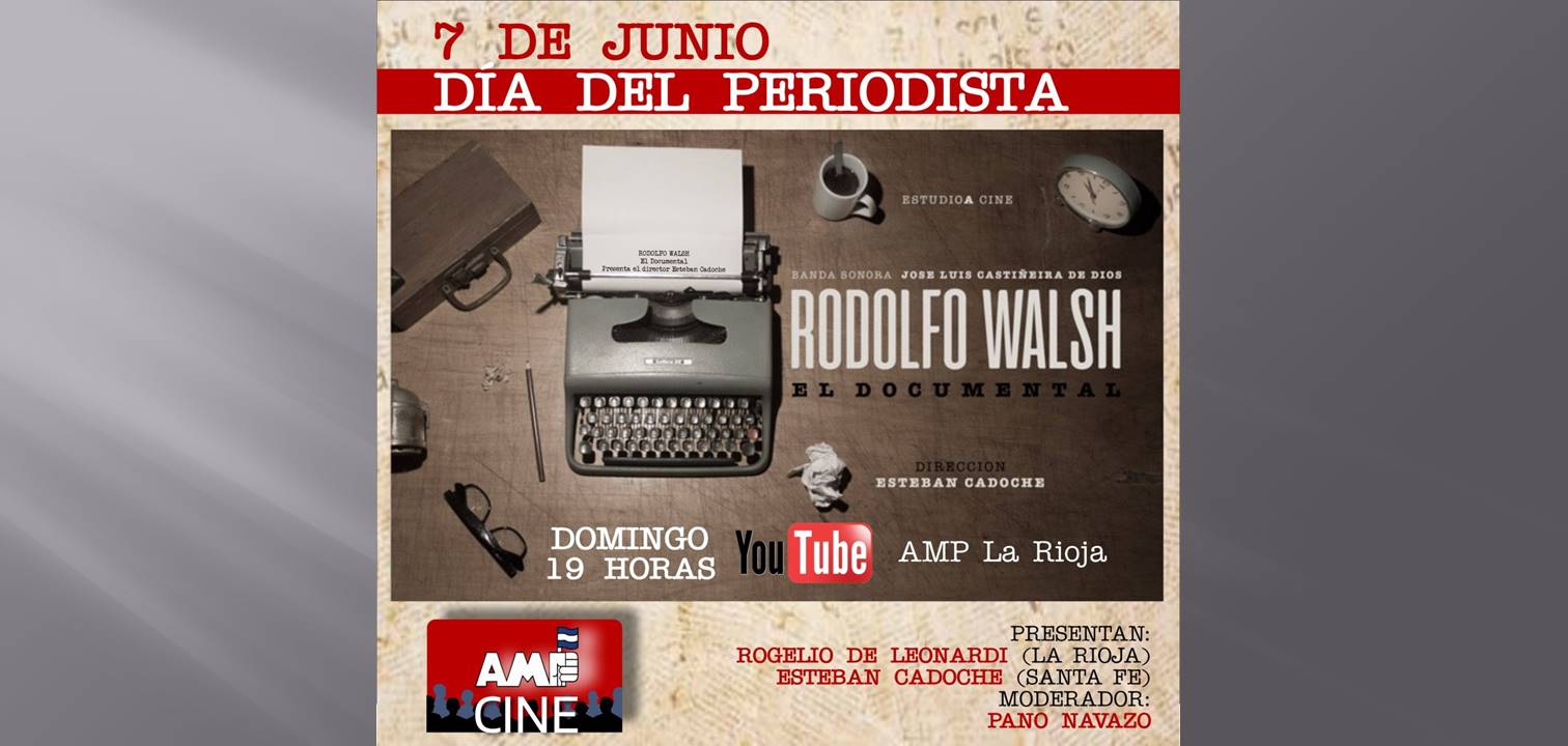 La Asociación de Maestros y Profesores de La Rioja presenta en el DÍA DEL PERIODISTA, la película “RODOLFO WALHS” El Documental, del realizador santafecino, Esteban Cadoche. Será a tráves del Canal Youtube https://www.youtube.com/channel/UCOefJzQh1N1WYWjE4gUyAtQ… , el domingo 7 de Junio 2020, a las 19 horas.