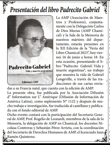 Rogelio de Leonardi participará de la presentación del libro Padrecito Gabriel 16-06-2023