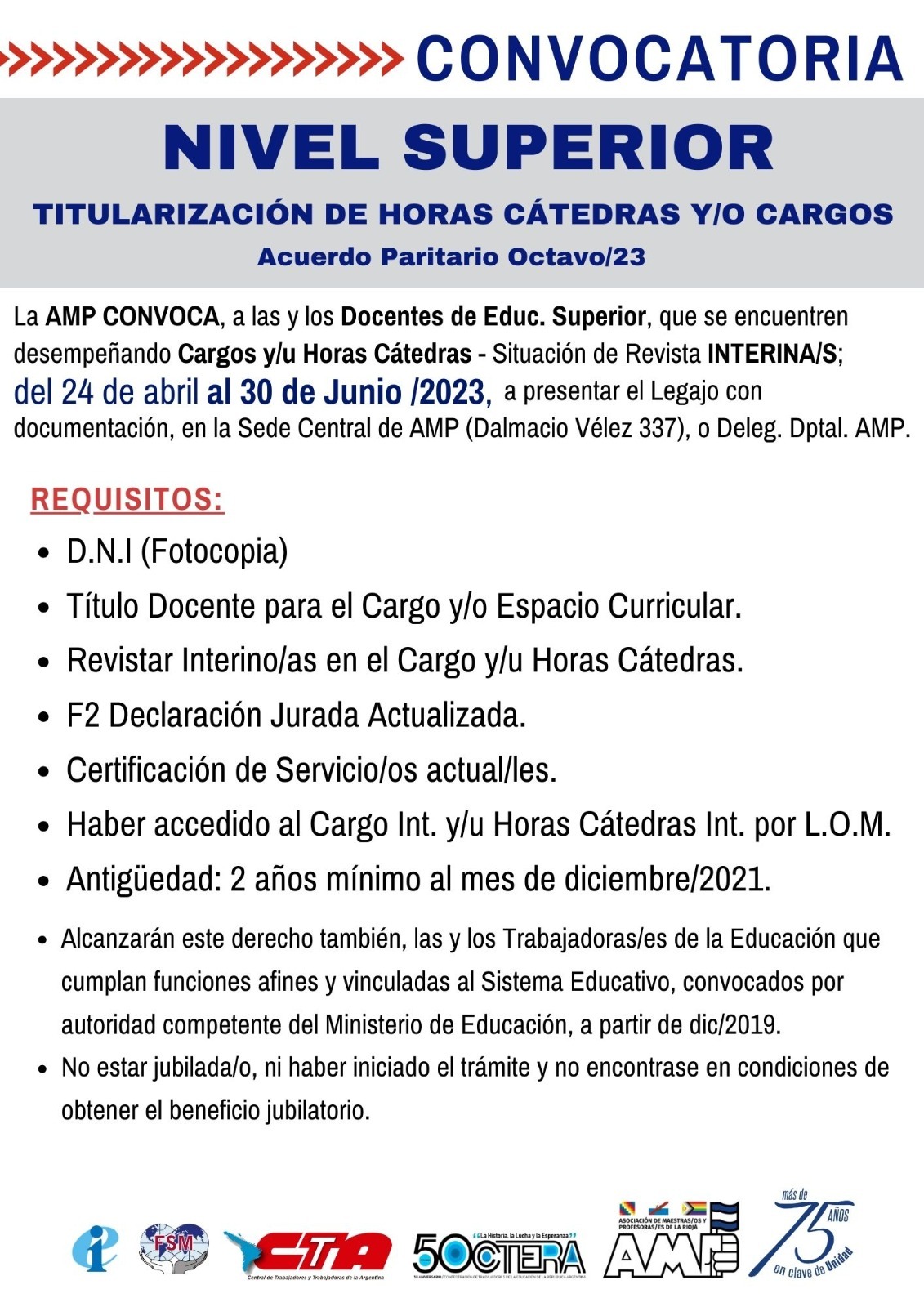 La Asociación de Maestras/os y Profesaras/es continúa recepcionando la documentación para Titularización de horas cátedras en el Nivel Terciario.