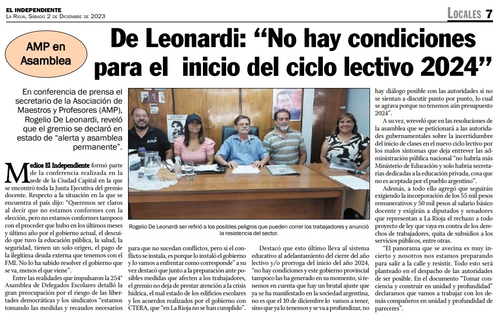 NO HAY CONDICIONES PARA EL INICIO DEL CICLO LECTIVO 2024