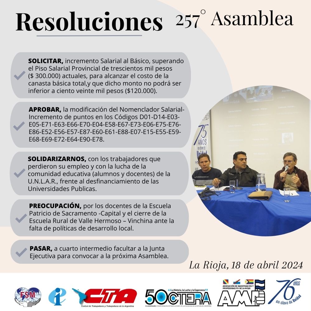 RESOLUCIONES DE La 257° ASAMBLEA PROVINCIAL EXTRAORDINARIA